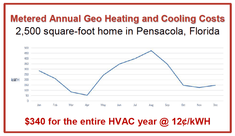 The recent harsh winter weather in northwest Florida (a solid week of temperatures in the teens and 20s, then 30s all month in January) offers an excellent example of the energy efficiency I enjoy with my geothermal heat pump. I live on a private road with seven neighbors on large lots. They all have typical, less efficient air-source heat pumps. The average of all those homes’ January 2018 electric bills was $250, while my bill for the same period was $120.